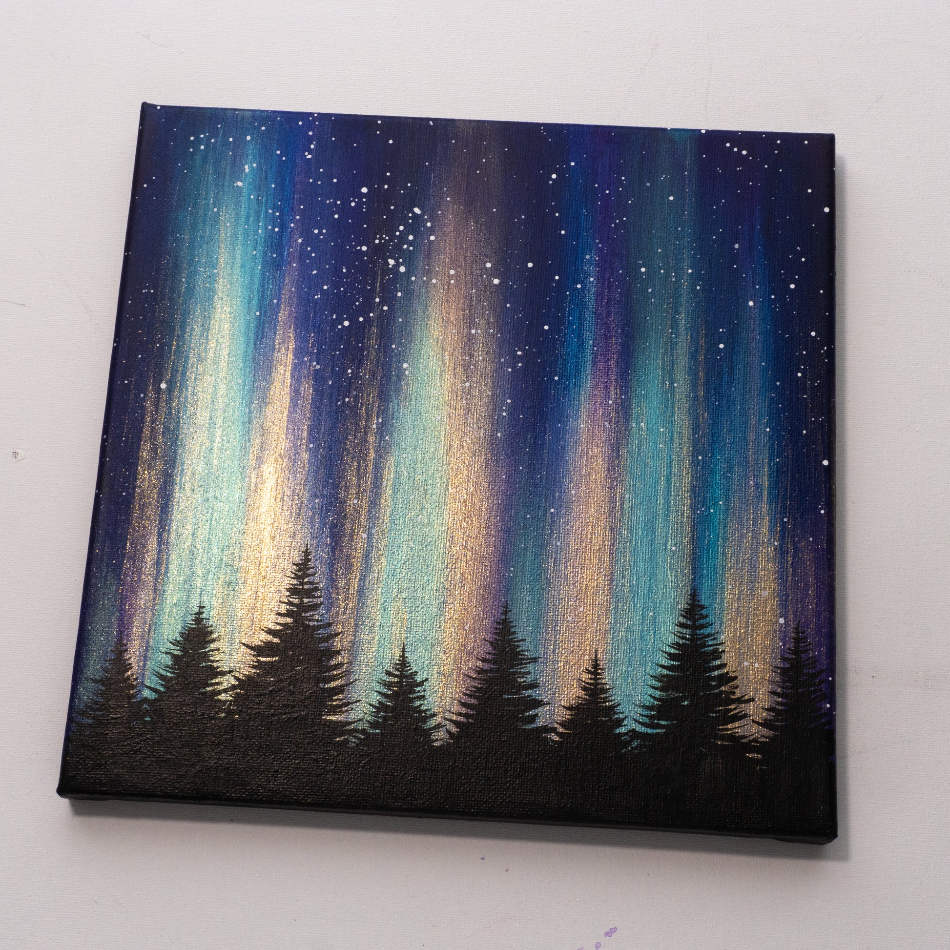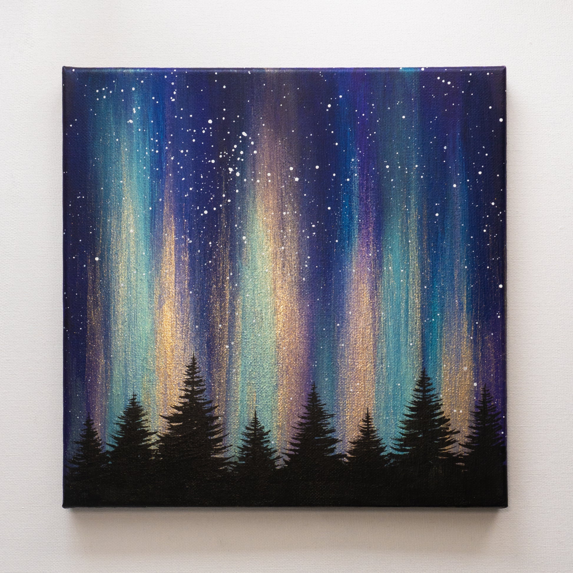 Turquoise Gold Northern Lights 10 x 10" - Original Painting