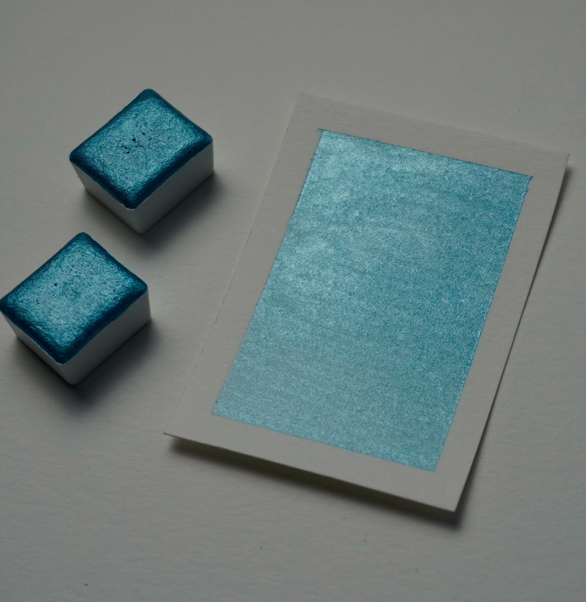 Ocean Blue is a watercolour with a cool blue bright shimmer with hints of silver and a green undertone.